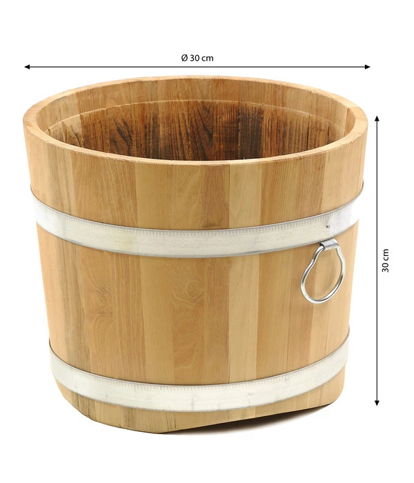 Sie werden lange Freude an diesem wunderschönen handgefertigten Unikat haben. Der Kübel wurde nämlich aus massivem Robinienholz gefertigt, das sich durch extreme Strapazierfähigkeit und Langlebigkeit auszeichnet. Innen ist der Kübel ausgebrannt, dies verlängert die Lebensdauer und beugt Pilzbefall vor. Sehen Sie gedanklich, wie der Blumenkübel voller überquellender Blütenpracht zum Anziehungspunkt für Bienen wird und im Sonnenschein einen wundervollen Eindruck macht. Oder wie er zur Adventszeit, der Kälte trotzend, mit einer Konifere besetzt, von einer Lichterkette in einen goldenen Schimmer getaucht wird. Doch Sie können den runden Robinienkübel auch als Mini-Gartenteich nutzen. Lassen Sie Ihre Fantasie fließen, bestimmt kommen Ihnen noch mehr Ideen. Nicht zögern, bestellen Sie sich dieses Nostalgie verströmende Stück Handwerkskunst und genießen Sie seine vielfältigen Verwendungsmöglichkeiten.