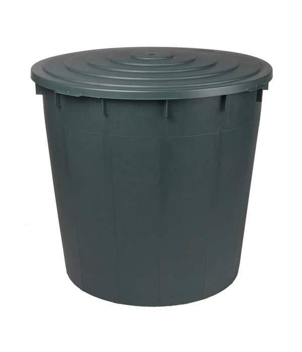 Kunststoff-Regentonne 500 l mit Deckel, rund, dunkelgrün
